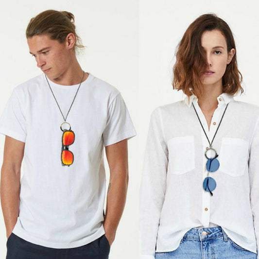 Glasses Holder Eyeglasses Necklace with Metal Hoop - Silver